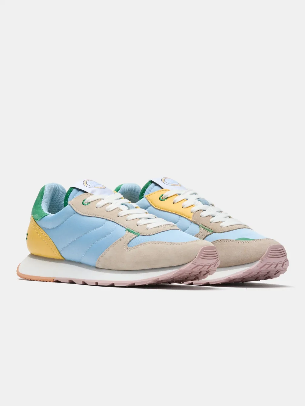 De Larisa In Pastelblauw Nylon Combineert Klassieke En Moderne Esthetiek En Introduceert Een Baanbrekend Voorstel Voor Retro- En Vintageliefhebbers. Asymmetrische Gele Lederen Details Leggen De Onderscheidende Essentie Van Deze Sneakers Vast. Het Grijs Getinte Suède Op De Voorgrond, Aangevuld Met Een Vleugje Groen Rubber, En Het Dennengroene Suède, Voegen Een Premium Tintje Toe Aan Dit Silhouet. De Zool In Wafelstijl In Roze En Oranje Tinten, Geaccentueerd Door Het Reliëflogo, Biedt Een Finishing Touch Die Bij Elke Stap De Moderniteit Aanwakkert. Lichtheid En Comfort Gaan Naadloos Samen Met De Binnenzool Van Traagschuim, Waardoor Ze De Perfecte Keuze Zijn Om Uw Casual-Chique Stijl Aan Te Vullen Met Uw Favoriete Jeans.