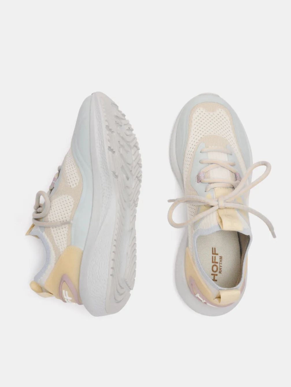 Stijl En Functionaliteit Komen Samen In Ritme. Deze Sneakers In Hardloopstijl In Crème Met Subtiele Hints Van Pastelblauw En Geel Zijn De Perfecte Aanvulling Voor Dagen Waarop Je Comfort Zoekt Met Een Casual En Sportieve Touch. Gemaakt Van Technisch Flyknit-Materiaal En Ortholite-Inlegzolen, Zorgen Ze Voor Lichtheid En Ondersteuning. Dankzij Het Elastische Ontwerp Zijn Ze Gemakkelijk Aan En Uit Te Trekken, Perfect Om Zonder Sokken Te Dragen.