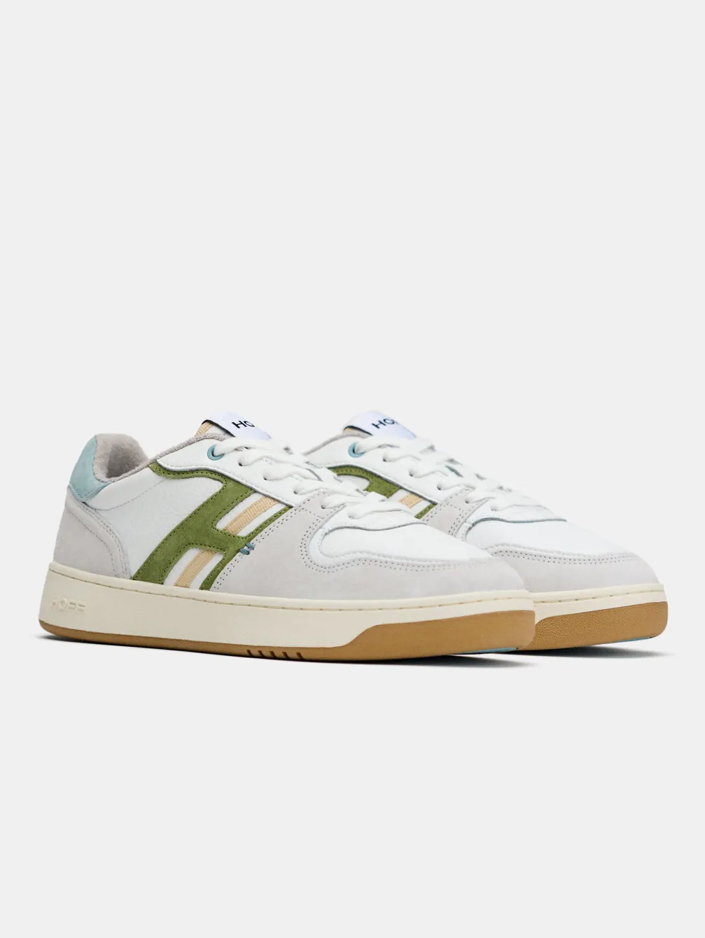 Als U Op Zoek Bent Naar Veelzijdigheid En Moderniteit In Een Sportief Ontwerp, Presenteren Wij De Cairoli. Het Is Een Sneaker In Bamba-Skatestijl, Die Opvalt Doordat Hij Volledig Van Leer Is In Het Wit, Maar Met Unieke Details In Grijs En Groen Suède Plus De Kenmerkende Geweven Lijn In Een Zandtint. Ontworpen Voor Loopcomfort Met Een Inlegzool Van Traagschuim. De Gerecyclede Rubberen Zool Bootst De Stevigheid Van De Trottoirs Van Het Seizoen Na, Geaccentueerd Door Pastelblauwe En Gemarmerde Details. Het Geborduurde Logo Aan De Achterkant Voegt De Handtekening Van Het Merk Toe. Ze Zijn Ideaal Om Elke Look Naar Een Hoger Niveau Te Tillen, Een Persoonlijkheidsstuk Voor Op Het Werk Of Op De Universiteit.