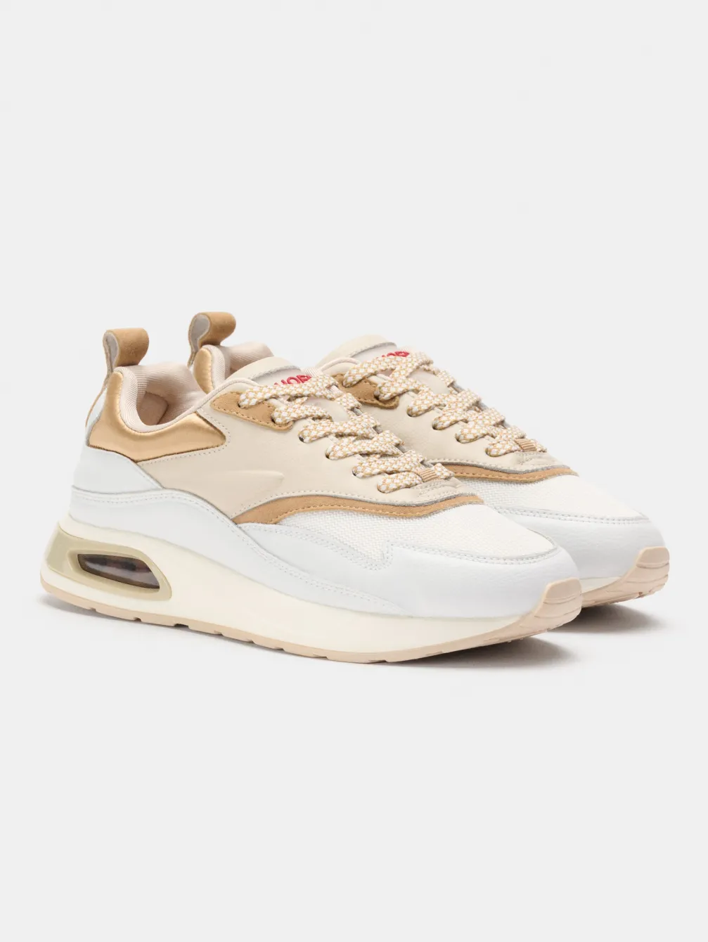 Met Een Iconisch Silhouet Uit De Jaren 90 Is De Evolution Een Hardloopschoen Die Nooit Uit De Mode Raakt. Blauwe En Kaki Lederen Details Aan De Zijkanten Contrasteren Met Stof Op De Neus En Satijngoud Aan De Bovenkant. Bijpassende Veters En De Hoff H Met Tegenmerk Zorgen Voor Een Uniek Tintje. Een Stijlvolle Garderobe-Essential, Ondersteund Door Het Comfort Van De Inlegzool Van Traagschuim.