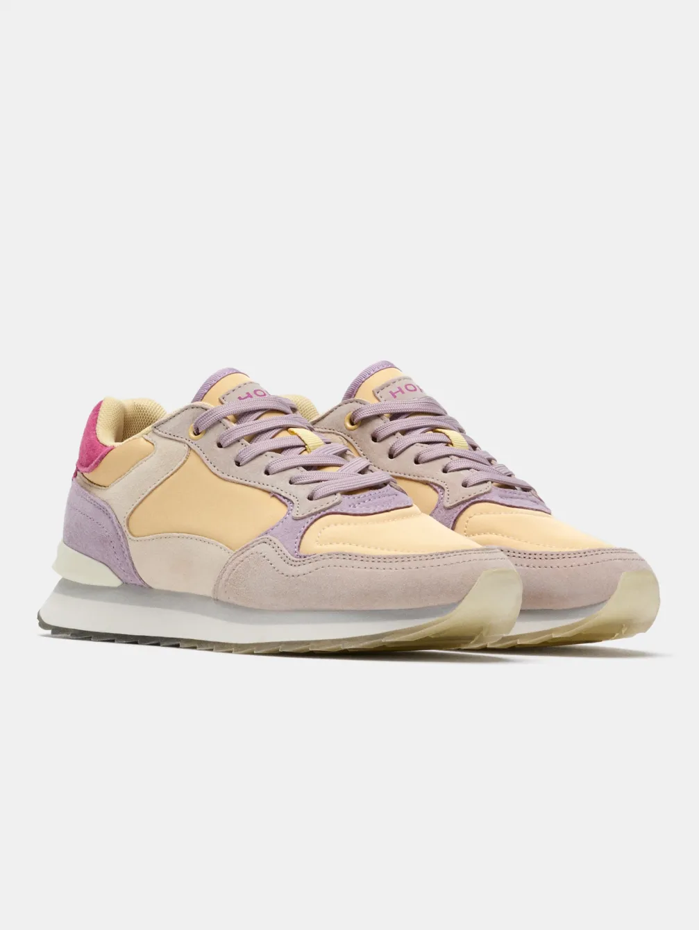 Met Een Ontwerp Geïnspireerd Op De Stad Galveston, Hebben Deze Sneakers Een Uniek En Stijlvol Kleurenpalet, Met Een Zachte Zandgele Tint Die Contrasteert Met Lila. De Combinatie Van Leer-, Textiel- En Rubbermaterialen Maakt Ze Tot Een Authentiek Stuk En Biedt Een Veelzijdig Ontwerp Voor Uw Uiterlijk. Met Een Dosis Comfort Dankzij De Binnenzool Van Traagschuim Zijn Deze Sneakers Ideaal Om Een Nieuwe Stad Te Verkennen Of Naar Je Werk Te Gaan. Mis De Essentie Niet Die In Elke Zool Zit En Til Je Outfits Naar Een Hoger Niveau.