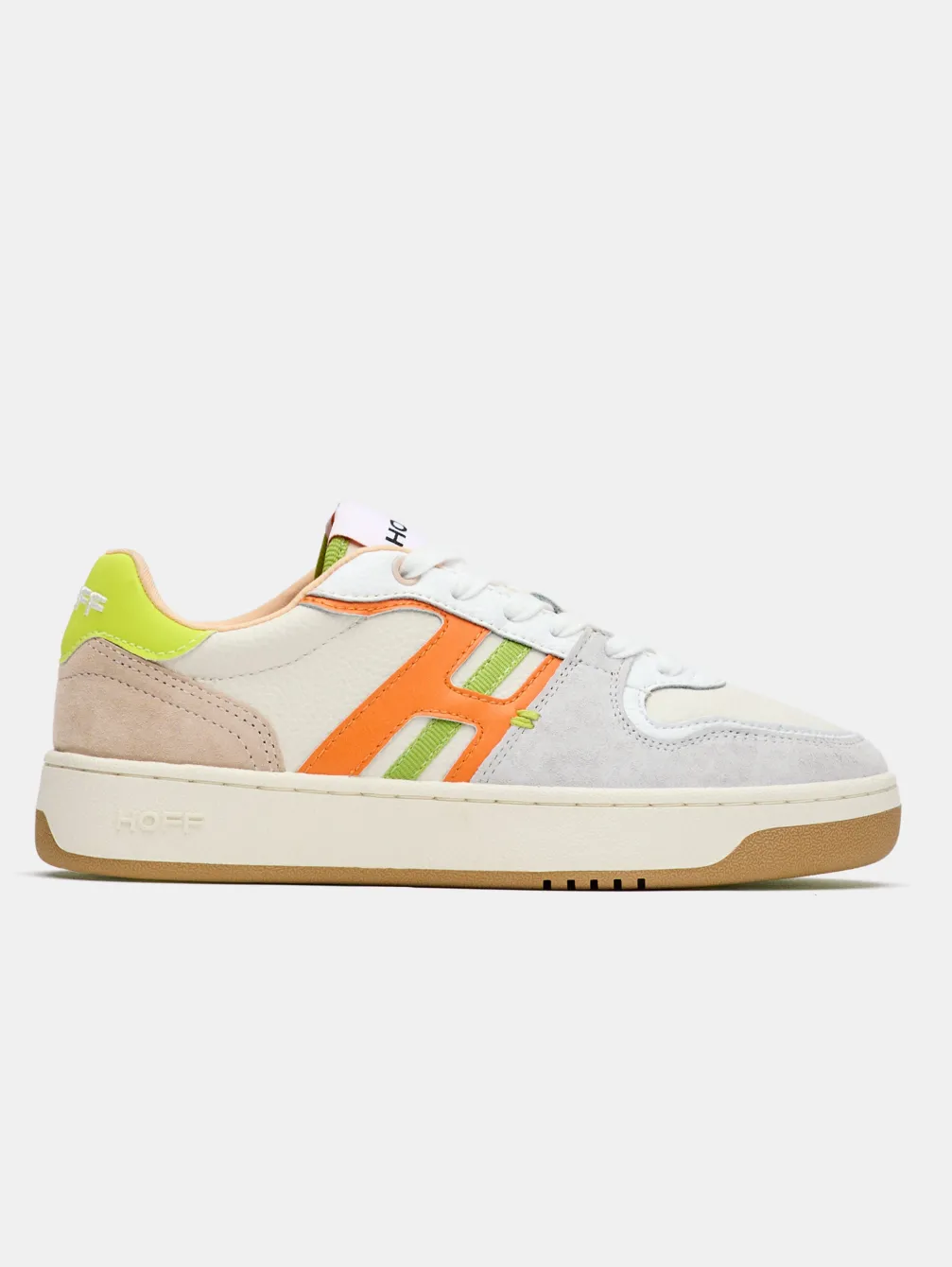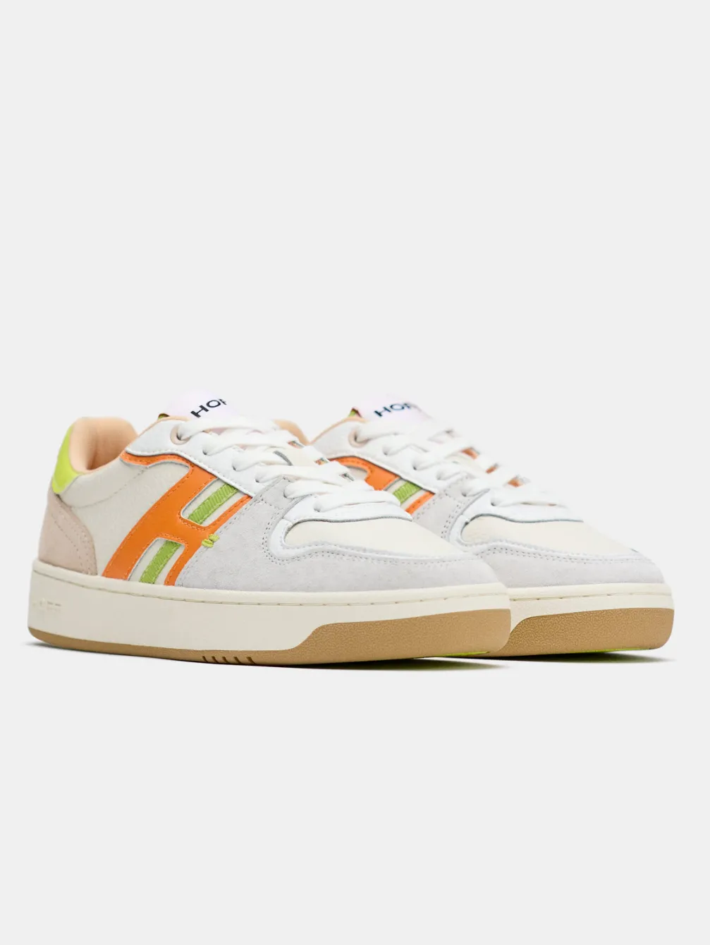 Geïnspireerd Door Het Gamla Stan-Seizoen, Combineert Dit Model Veelzijdigheid En Moderniteit In Zijn Sportieve Ontwerp. Het Heeft Een Bamba-Skate-Stijl En Valt Op Met Witte, Oranje En Limoengroene Lederen Details En Suède Stukken In Grijs En Kaki. De Memory-Foam Sockliner Zorgt Ervoor Dat Deze Schoenen Comfortabel Lopen. De Buitenzool Van Gerecycled Rubber Bootst De Stevigheid Van Seizoensgebonden Bestrating Na, Geaccentueerd Door Fluorescerende Groene En Gemarmerde Details. Het Geborduurde Logo Aan De Achterkant Voegt De Handtekening Van Het Merk Toe. Ze Zijn Ideaal Om Elke Look Naar Een Hoger Niveau Te Tillen, Een Basic Met Persoonlijkheid Die Je Kunt Dragen Met Een Rok Of Jeans.