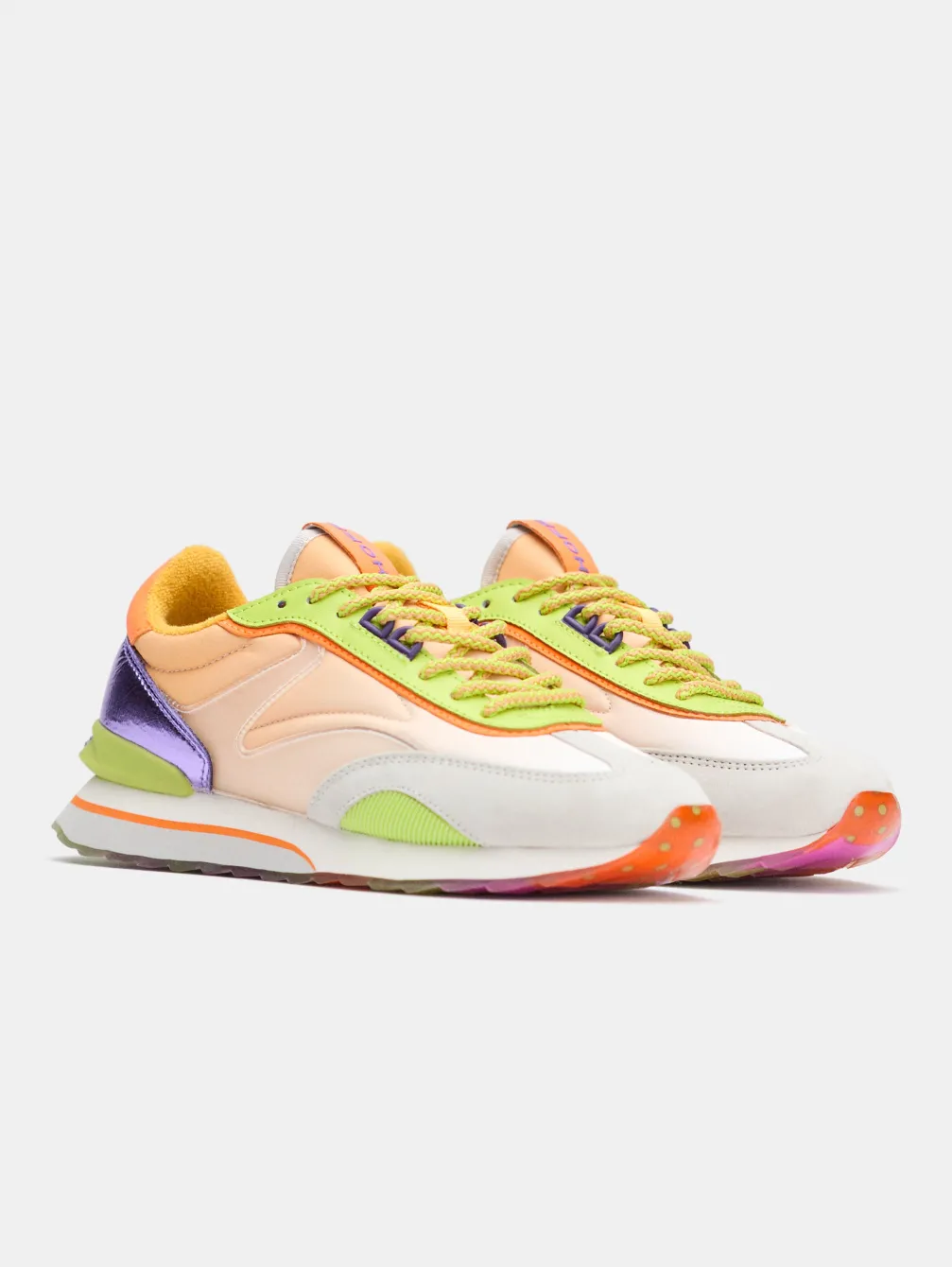 De Art X Yukaidu-Collectie Combineert Kunst En Mode Naadloos. Deze Lychee Sneakers Weerspiegelen De Inspiratie Van De Kunstenaar En Combineren Haar Passie Voor Geometrische Vormen En Levendige Patronen. Ze Combineren Materialen Zoals Leer, Suède En Rubberen Details. Het Samenspel Van Kleuren – Variërend Van Oranje Degradatie, Limoengroen Tot Metallic Oranje En Paars – Transformeert Ze Tot Kunstwerken Op Zichzelf. Met Een Vleugje Retro In Hun Silhouet En Gevlochten Veters, En Het Comfort Dat Wordt Gegarandeerd Door De Binnenzool Van Traagschuim, Zijn Dit De Perfecte Sneakers Om Een Uniek Tintje Aan Je Look Toe Te Voegen En Op Te Vallen, Waar Je Ook Gaat.
