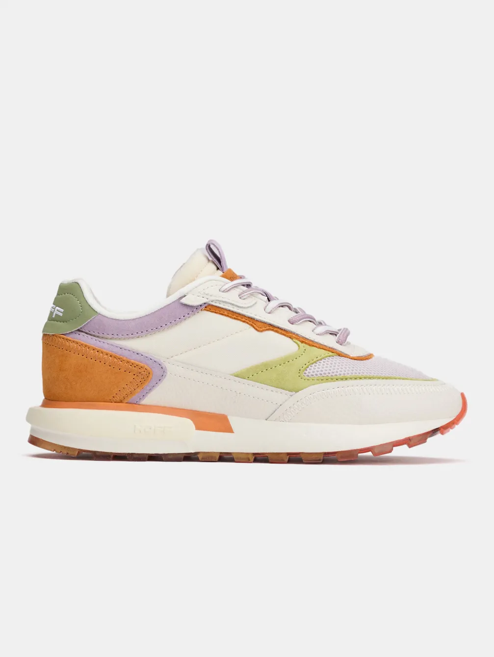 Geïnspireerd Door De Diversiteit En Culturele Rijkdom Van De Mungo-Stam, Hebben Deze Sneakers Een Slanker Silhouet Met Een Stevige Zool Waardoor Ze Het Perfecte Stuk Zijn. De Samensmelting Van Nude Stoffen En Tinten, Geaccentueerd Door Lila Veters En Oranje Details Op De Zool, Weerspiegelt Een Unieke Combinatie. De Mix Van Leer, Suède En Stof In De Kleuren Lila, Groen En Brons Biedt Niet Alleen Uitzonderlijke Details, Maar Belichaamt Ook Het Beste Van Design En Originaliteit. Deze Schoenen Zijn Perfect Voor Dagelijks Gebruik En Vallen Op Door Het Comfort Dat Wordt Geboden Door De Binnenzool Van Traagschuim. De Tribale Details Op De Zool Voegen Een Uniek Tintje Toe Aan Je Stijl.