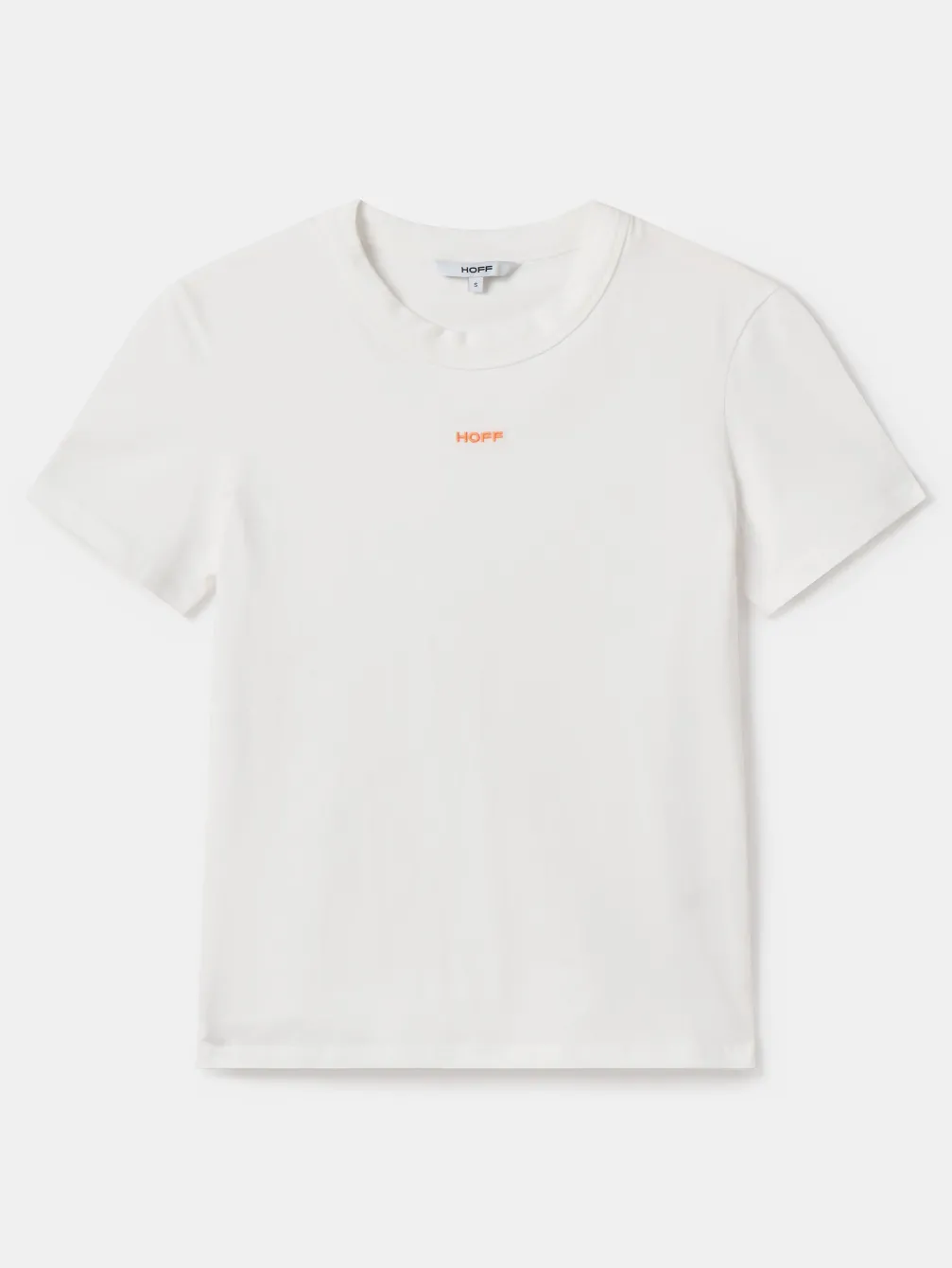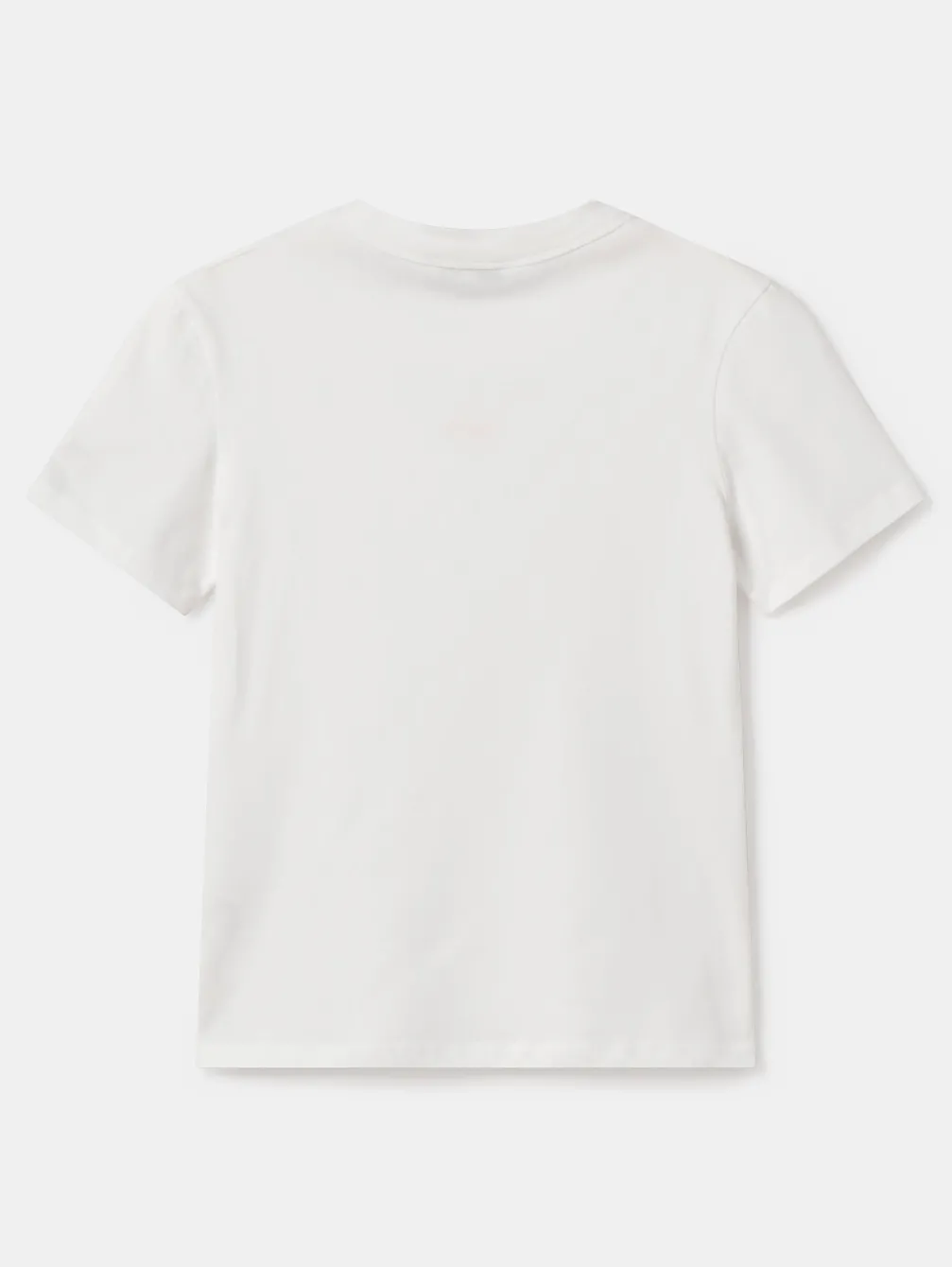 Terug Naar De Basis. Wit T-Shirt Van 100% Biologisch Katoen. Ronde Hals En Korte Mouwen. Geborduurd Detail Op De Borst In Contrasterende Kleuren.
