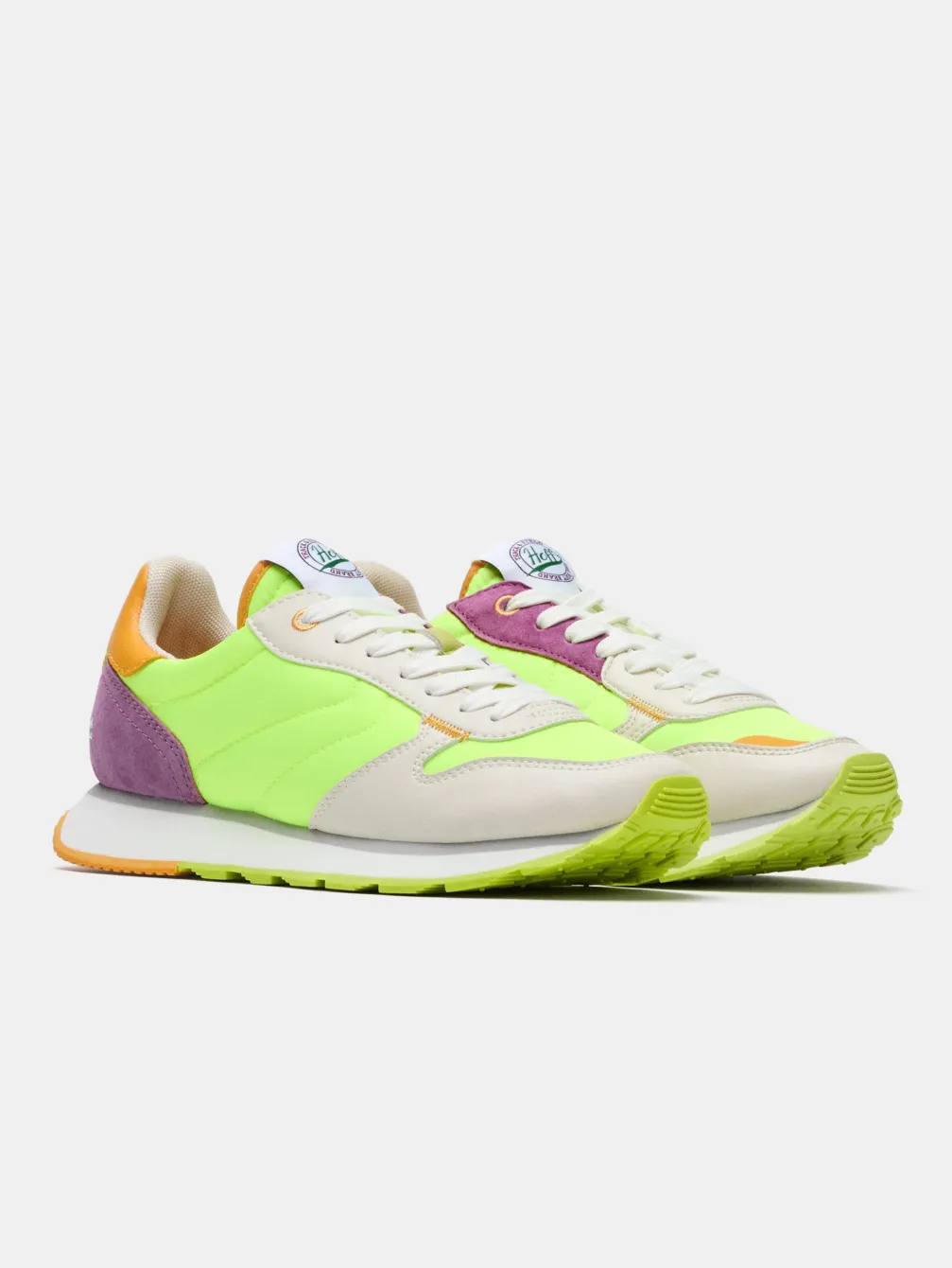 De Tegea Combineert Klassieke En Moderne Esthetiek En Streeft Ernaar Impact Te Maken. Ze Zijn Gemaakt Van Fluorescerend Groen Nylon En Bieden Een Onderscheidend Voorstel Voor Retro- En Vintageliefhebbers. Asymmetrische Details Van Paars Suède En Grijskleurig Leer Aan De Voorkant, Geaccentueerd Door Een Vleugje Mosterdrubber, Verhogen De Premium Essentie Van Dit Silhouet. De Zool In Wafelstijl In Limoengroen En Mosterd, Aangevuld Met Het Reliëflogo, Zorgt Voor Een Finishing Touch Die Bij Elke Stap Moderniteit Uitstraalt. Lichtgewicht En Comfort Gaan Naadloos Samen Met De Binnenzool Van Traagschuim, Waardoor Ze De Perfecte Keuze Zijn Om Uw Casual-Chique Stijl Naar Een Hoger Niveau Te Tillen Met Uw Favoriete Jeans.
